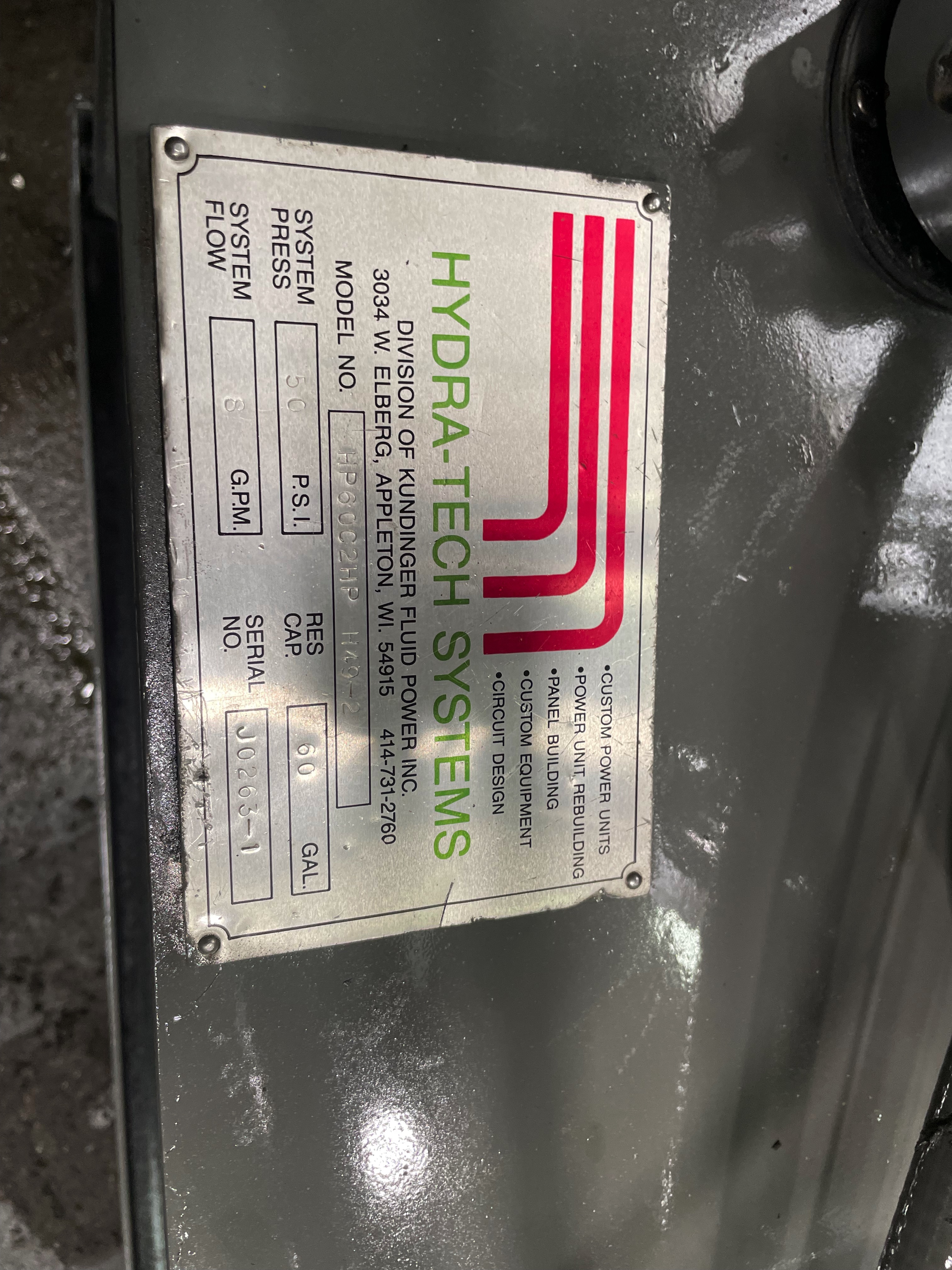 Hydra-Tech Systems HP6oC2HP H49-2 50 PSI 6 GPM Hydraulic Unit